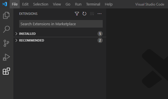 상단메뉴 View - Extensions 클릭하여 확장 메뉴를 실행합니다.