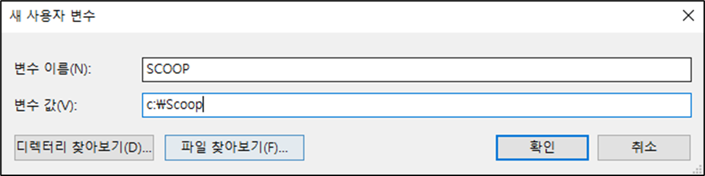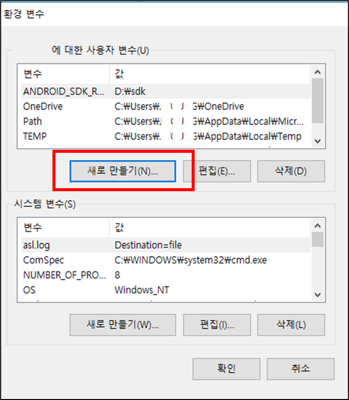 입력 후 확인을 눌러 환경변수를 등록합니다.