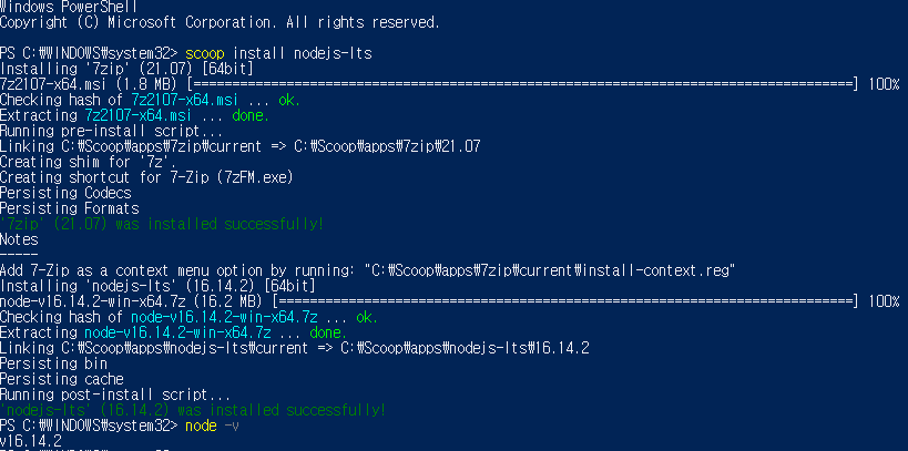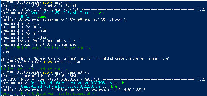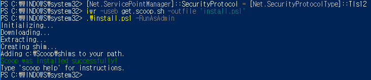 명령어를 실행한 뒤 인스톨이 되면 완료되면 c:\Scoop 디렉터리에 Scoop가 설치됩니다.
