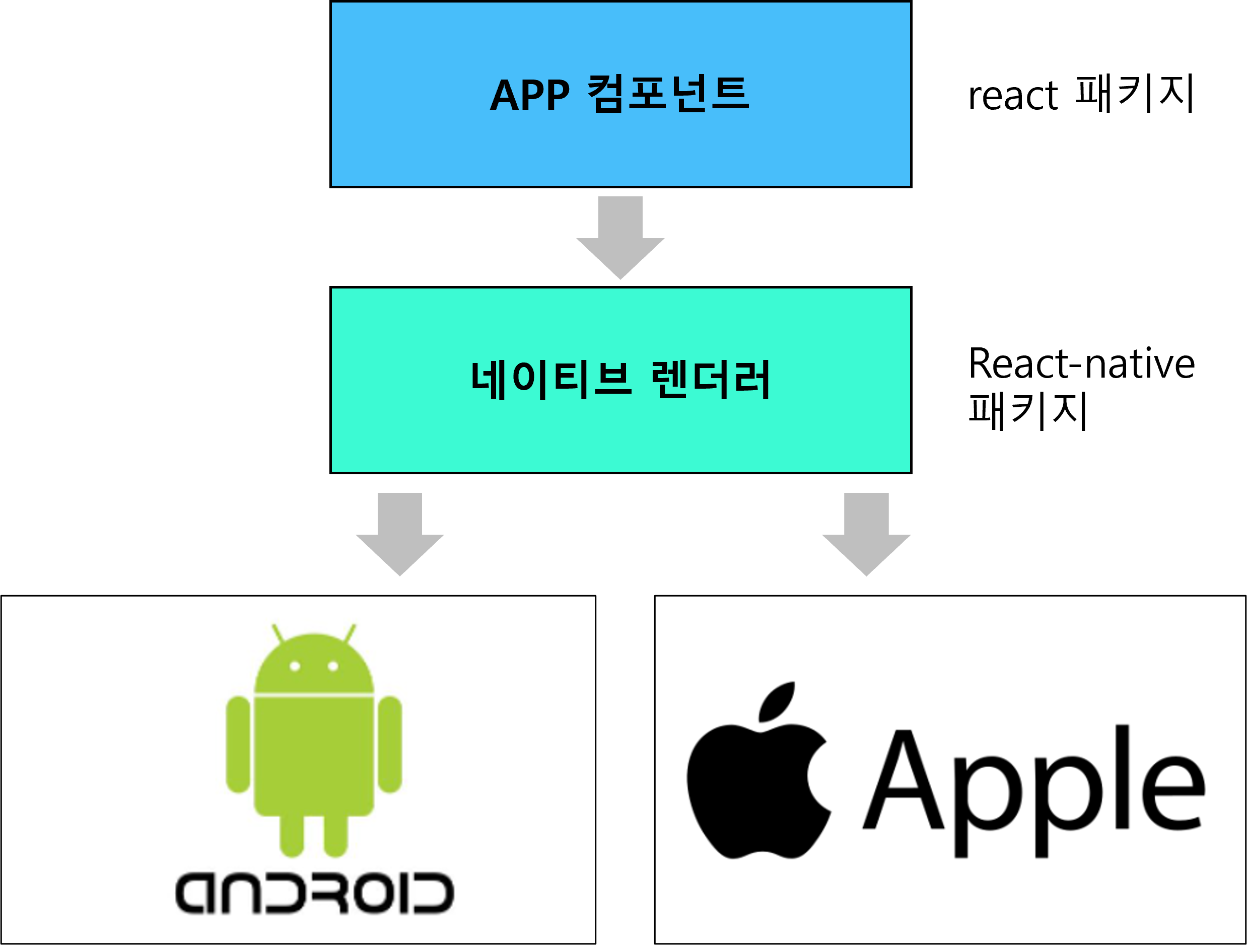 - 네이티브 렌더러는 리액트 패키지가 만든 가상 DOM 구조를 안드로이드/아이폰 화면 UI 객체로 바꿔주는 역할을 함.