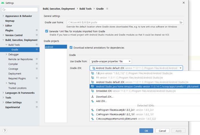 3) Gradle JDK 변경